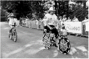 Startovní pole lichnovské čtyřiadvacítky doplnili stejně jako loni závodníci - recesisté. Letos nechyběla na okruhu kolem Lichnova ani koloběžka.